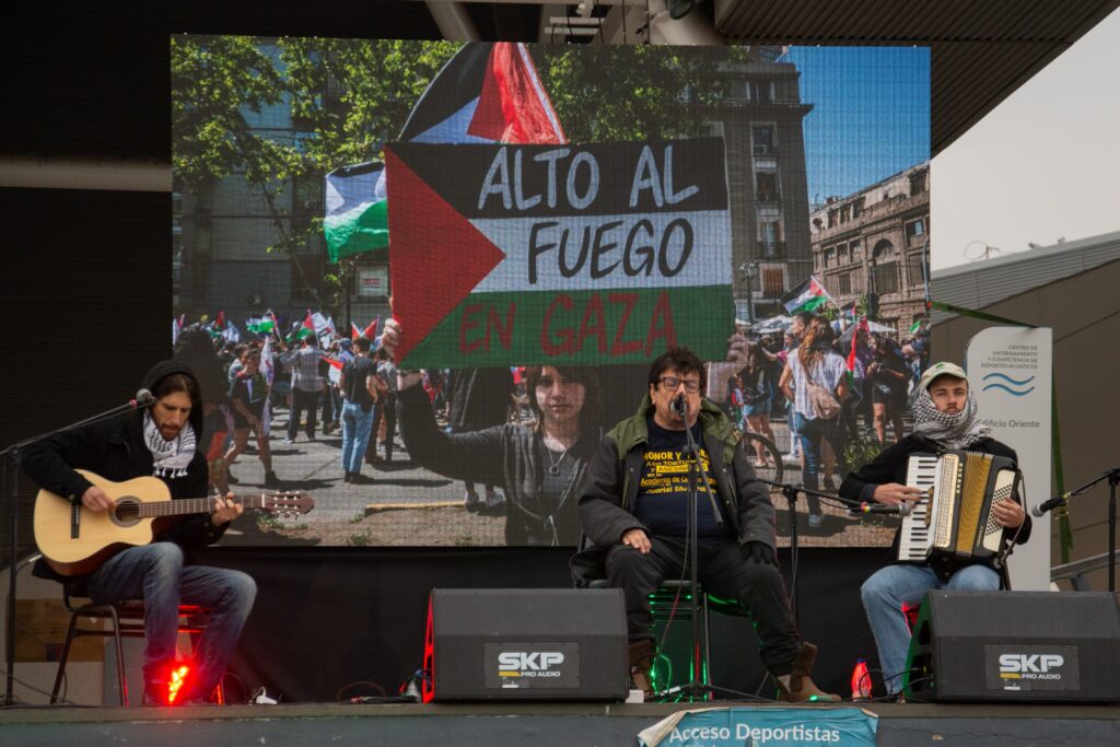 Junto con las organizaciones pro Palestina, de Derechos Humanos y de la sociedad civil de Chile levantamos la voz en un concurrido acto político-cultural de reivindicación de la memoria histórica y de la lucha de los pueblos por su autodeterminación, su derecho a la resistencia y especialmente en rechazo a la masacre que vive hoy el pueblo que vive en la Franja de Gaza.