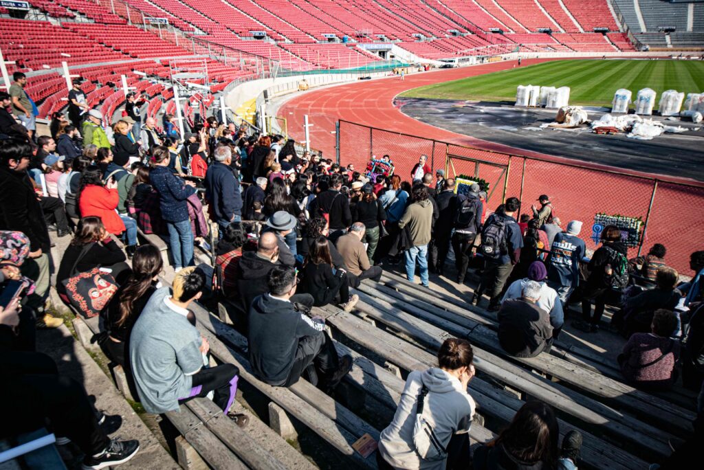 El pasado 10 de junio, se realizó en la Sala de Exposiciones de los Sitios de Memoria del Estadio Nacional el taller “La memoria como centro de nuestros corazones”, instancia vinculada a la exposición fotográfica del mismo nombre, convocada por la Coordinadora Feminista 8M y las muejeres de la Corporación Estadio Nacional Memoria Nacional.