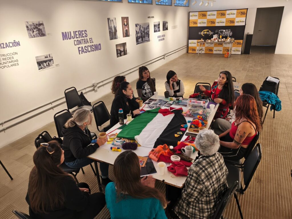 La jornada convocó a personas de distintas generaciones a compartir fotografías personales, contar historias familiares y participar en un bordado colectivo de corazones en solidaridad con las niñeces de Gaza, como gesto de memoria activa y empatía con otros pueblos.
