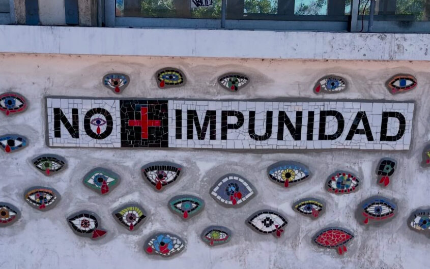 El pasado 5 de noviembre, el Colectivo Ojo Nítido montó una intervención artística en memoria de las víctimas de violencia e impunidad. La obra fue realizada en mosaico y escribieron la frase “No más impunidad”, rodeada de ojos con lágrimas de sangre. Esta obra coincide con el inicio del juicio del ex teniente coronel de… -